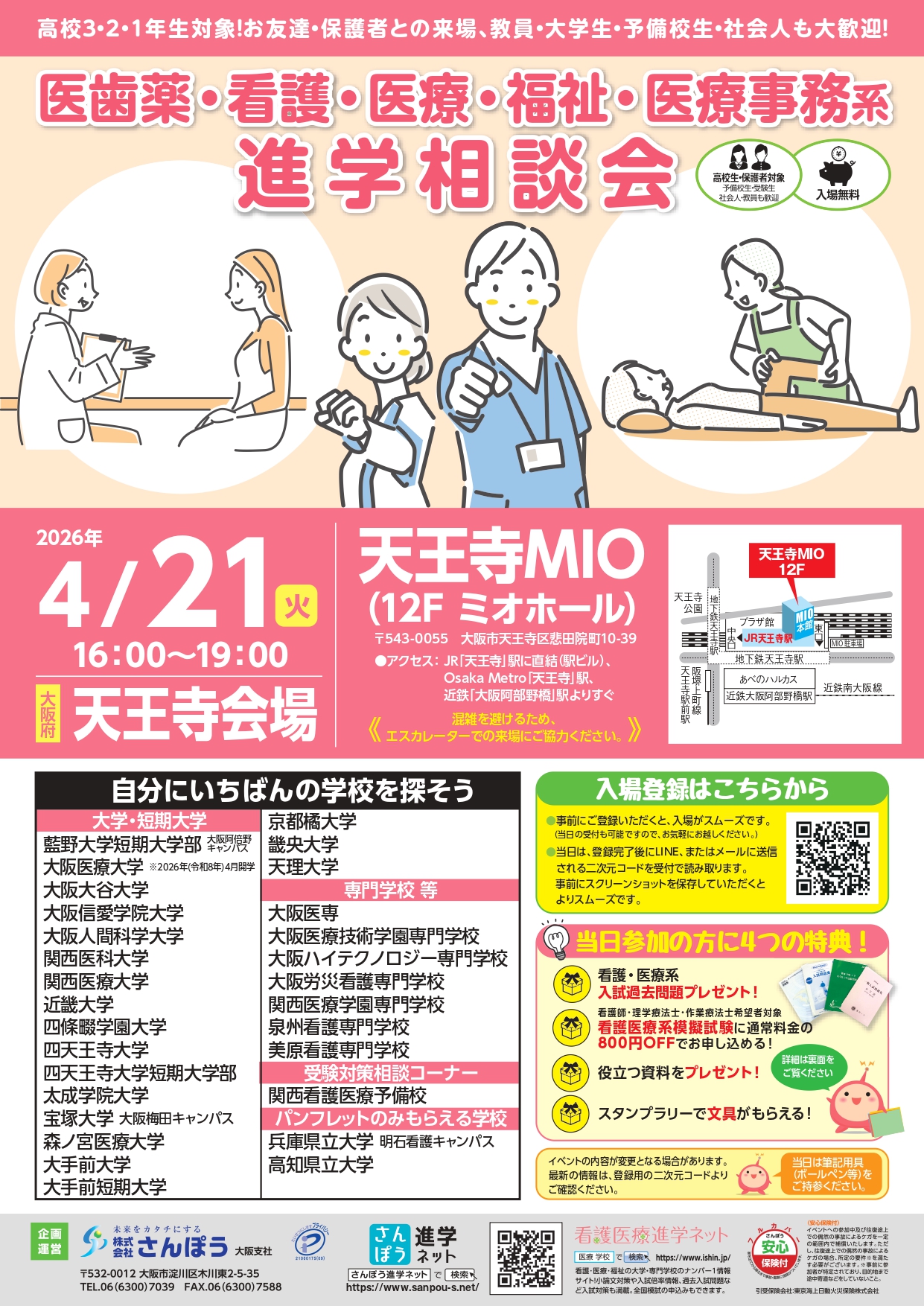 受験対策セミナー看護・医療系学校の入試対策セミナー等も実施しています。詳しくは各会場の詳細ページをご覧ください。